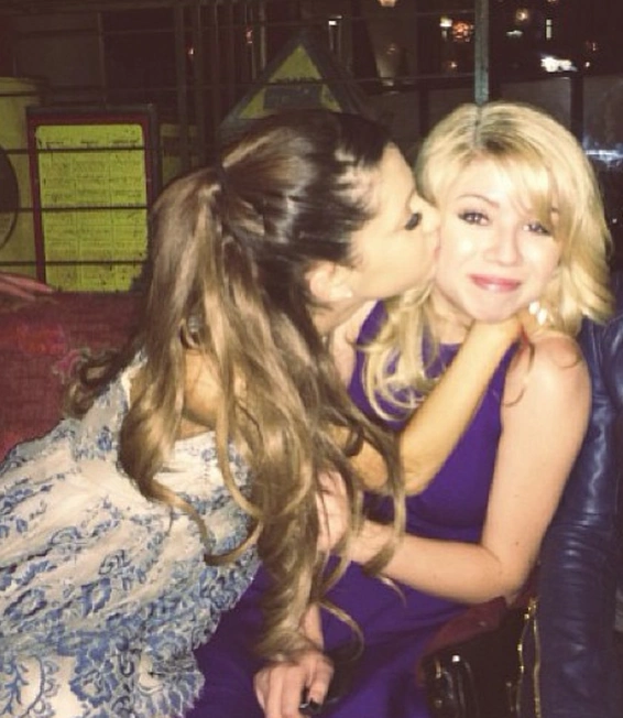 Ariana kissing Jennette on the cheek